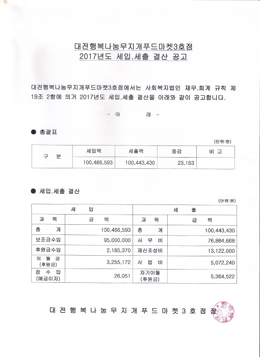 19-03-28 11:44 (공고)대전행복나눔무지개푸드마켓3호점 2017년도 세입.세출 결산 페이지 정보 작성자 성우보육원 댓글 0건 조회 5,578회 본문 (공고)대전행복나눔무지개푸드마켓3호점 2017년도 세입.세출 결산 목록 댓글목록 댓글목록 등록된 댓글이 없습니다.