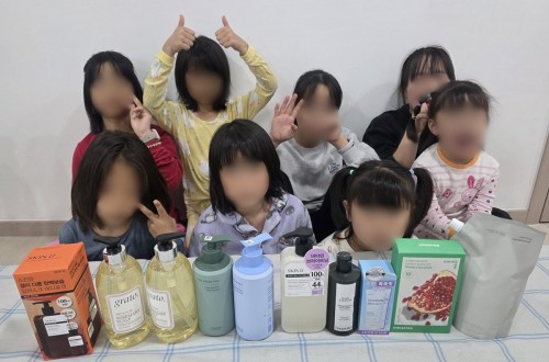 아모레 퍼시픽에서 아이들을 위해 로션과 립밤, 샴푸, 컨디셔너를 후원해 주셨습니다~~ …