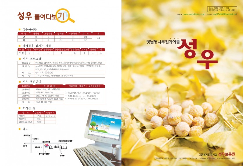 2019.05.17 성우소식지 46호 페이지 정보 작성자 성우보육원 댓글 0건 조회 1,834회 본문 성우소식지 46호(2013.04~2013.08) 목록 댓글목록 댓글목록 등록된 댓글이 없습니다.